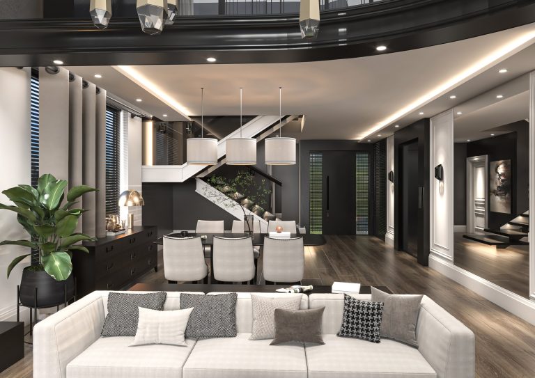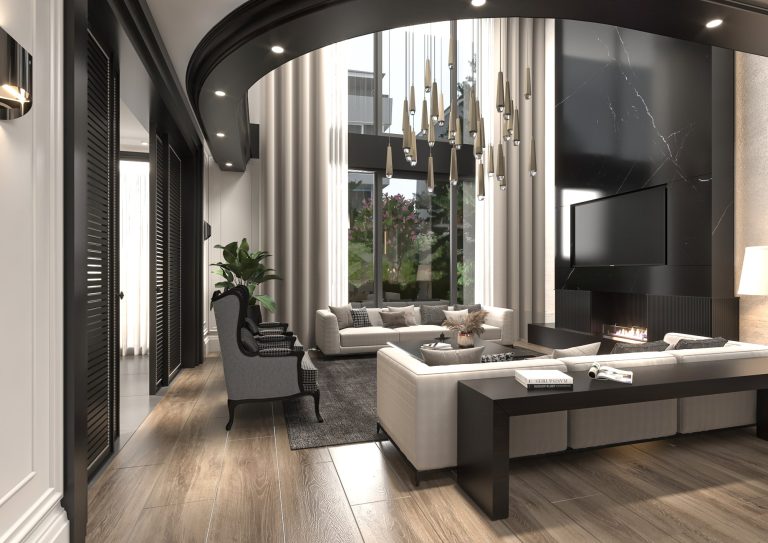 İkinci katta 3 geniş yatak odası 3 banyo, 1 çamaşır odası, asansör ve 28.75m²’lik geniş bir sofa ile konforlu bir yaşam alanı