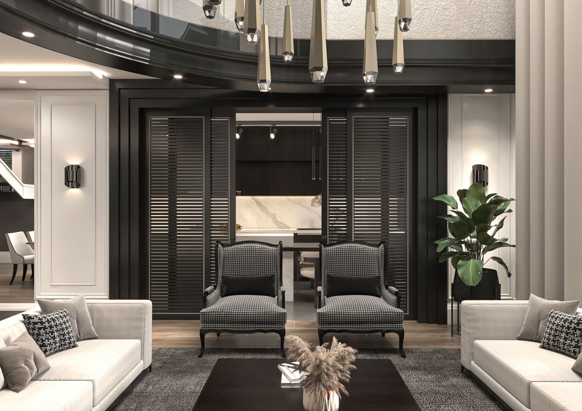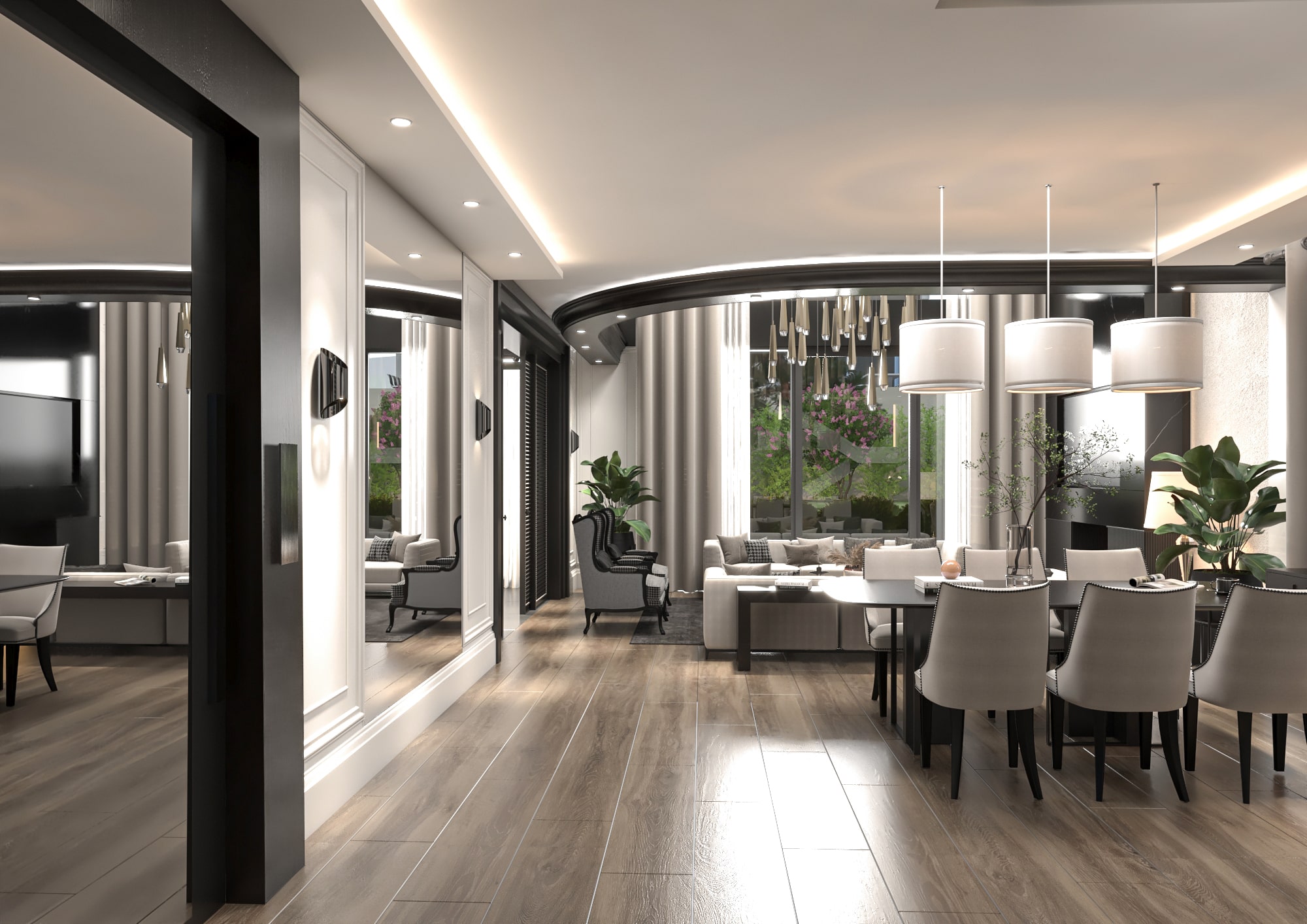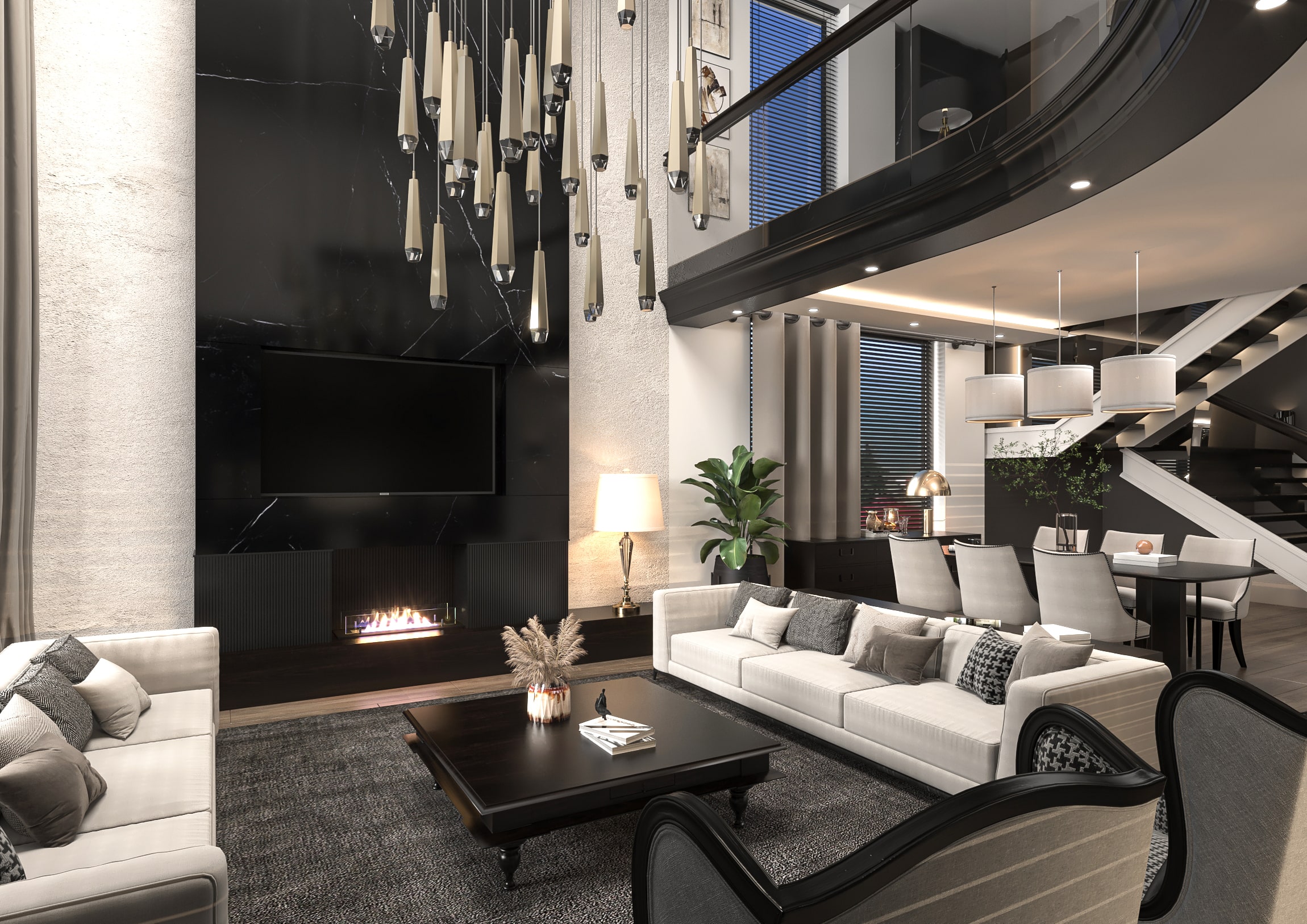 İkinci katta 3 geniş yatak odası 3 banyo, 1 çamaşır odası, asansör ve 28.75m²’lik geniş bir sofa ile konforlu bir yaşam alanı